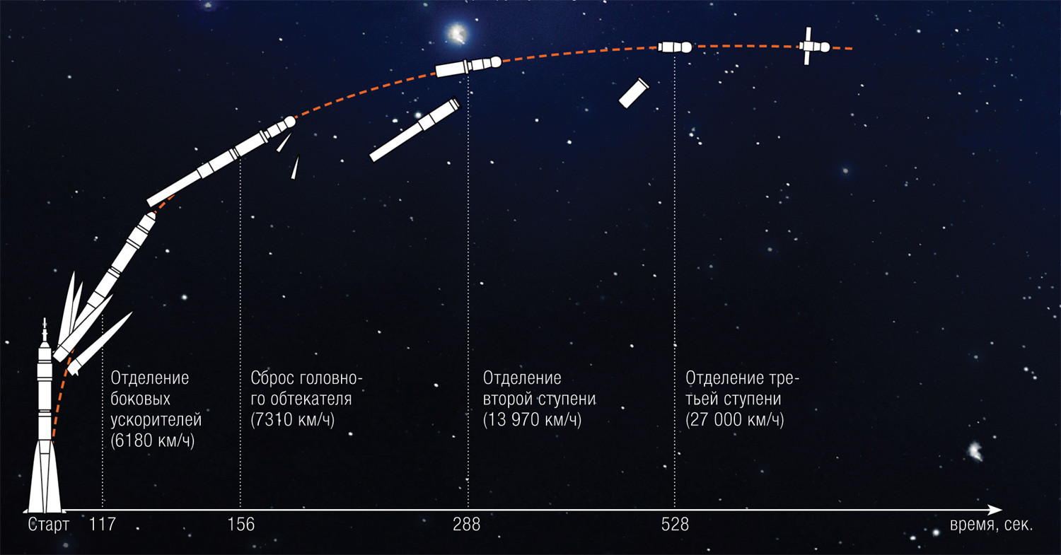 С момента старта до выхода на низкую околоземную орбиту проходит 9 минут. Практически все это время члены экипажа испытывают перегрузку до 4g, то есть их тело весит до четырех раз больше, чем обычно.