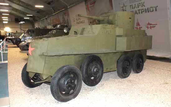 В 1936-1939 годах в СССР серийно выпускался бронеавтомобиль БА-6. Всего было выпущено 386 бронеавтомобилей типа БА-6. Машина создана на базе шасси грузового автомобиля ГАЗ-ААА. Экипаж бронемашины состоял из 4 человек. Основное вооружение включало 45-мм пушку 20К образца 1932 года и спаренный с ней 7,62 мм пулемёт ДТ, которое было установлено в цилиндрической башне кругового вращения. Толщина бронирования составляла 8 мм. На модернизированном варианте машины БА-6М толщину бронирования увеличили да 10 мм.