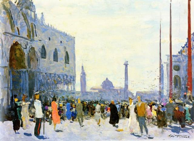 Николай Римский-Корсаков, будучи выпускником Морского корпуса, во время службы на корабле «Алмаз» в 1860-е посетил ряд стран, среди которых была и Италия. Воспоминания о ней он позднее отразил в опере «Садко». В песне «веденецкого», или венецианского, гостя, который рассказал Садко о своей стране, он показал славный каменный город «на синем море» и «под синим небом».