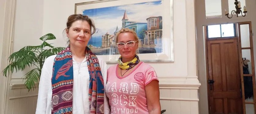 Мое внимание привлек Вальпараисо, признанный историческим наследием страны. Здесь я хотела познакомиться с чилийской художницей, а встретила землячку из Кузбасса. Татьяна Зенцова — архитектор и художник, родилась в Кемеровской области, в Чили ее привели семейные обстоятельства 30 лет назад. Мы пьем чай в уютной кухне Татьяны, рядом ее мама, муж, брат и друзья. «Черный хлеб или белый?» — спрашивает она гостей. «Скучаю по настоящему черному», — признаюсь я. «Тогда вот еще и соленый огурчик!» — сибирская душа даже в Чили остается сибирской!
