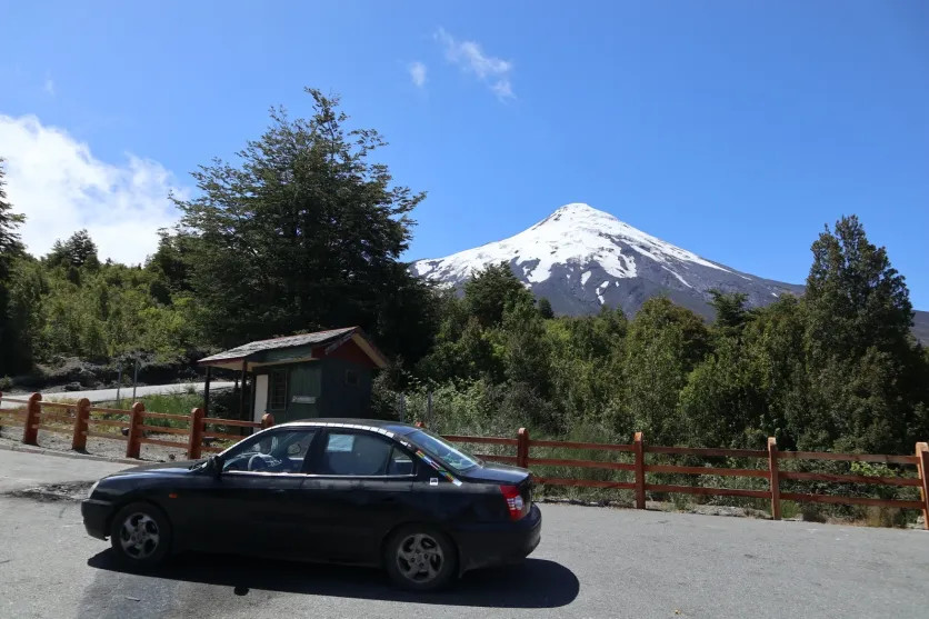 Чтобы добраться до вулкана Вильяррика, я проехала через город Вильяррика, потом вдоль озера Вильяррика, затем заехала в нацпарк Вильяррика, и по дороге из вулканической крошки поднялась на смотровую площадку Вильяррика. С одной стороны величественный вулкан, с другой — лес с оборудованными тропинками для трекинга и велодорожками. Пройдешь по ним чуть вглубь, открывается вид на долину.