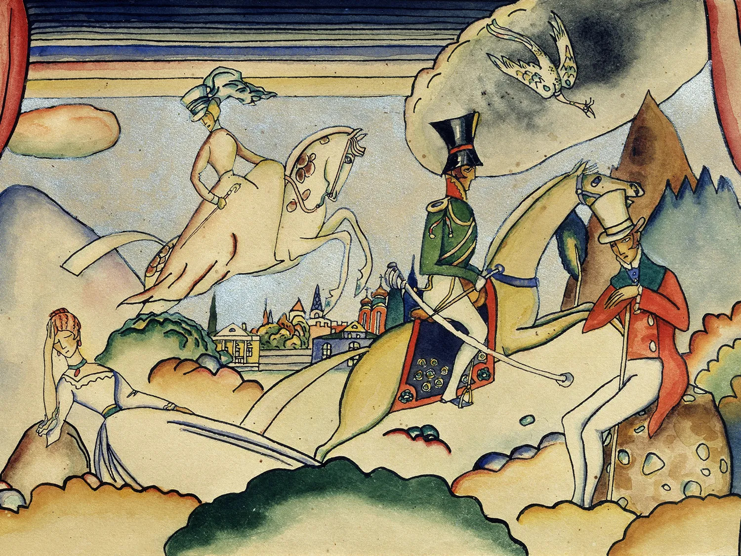 Шагала просто уничтожали тогда, а слава у него пошла: не просто формалист, а еще и еврей. А в 1948-м была антиеврейская кампания. Всех врачей-евреев пересажали. В Петербурге были большие вещи Шагала. «Муза. Явление» у Михаила Григорьевича Гордеева. Приехал Гордеев к Марии Ивановне Машковой, вдове Ильи Машкова, и хотел купить у нее что-то такое серьезное. А она была женщина алчная, и, когда он выбрал, она назначила сумму, которой у него не было. Разочарованный, он хотел уже уходить, и тут она говорит: «Знаете, я продам вам дешевле, если вы возьмете еще эту дрянь». Дрянь, метр 45 на метр 50. И так он утащил лучшую в частных коллекциях сегодня вещь Шагала. Из интервью Валерия Дудакова
