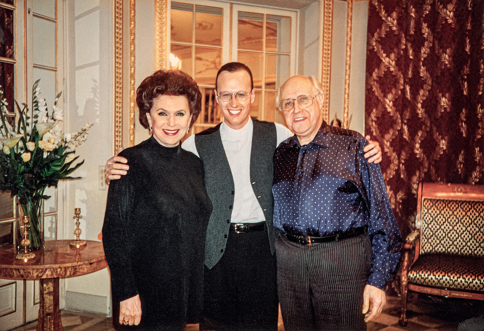Возникает неловкая пауза. Психологически мне стало легче, когда я обратил внимание, что Вишневская... в домашних тапочках. В этих самых тапочках была энергия домашнего уюта, к чему я так стремился, настаивая на съемке в Париже. Когда мы раздевались в прихожей, я услышал громкий энергичный голос Ростроповича. Голос доносился откуда-то из дальней комнаты. Великий музыкант всего пару часов назад вернулся из очередной гастрольной поездки.