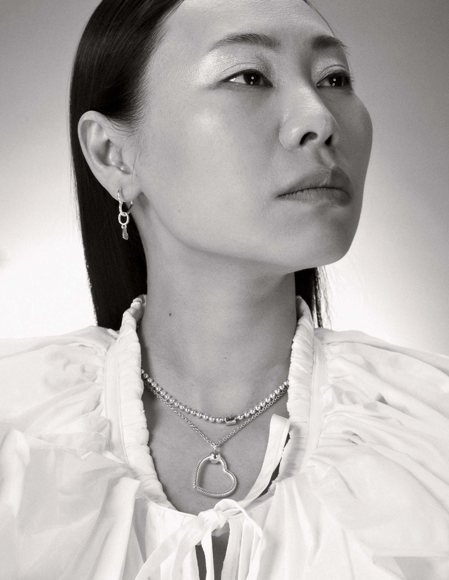 Дарить мне лучше однозначно сережки. Так как я часто их меняю и в своих луках делаю большой акцент именно на серьги. А кольцо, я считаю, можно дарить любимым и близким друзьям. Ожерелья я не так уж и часто ношу, но очень люблю чокеры. Вот сейчас на мне кулон «Pandora O» в форме сердца из коллекции Timeless. Очень символично, я люблю украшения со смыслом. Сердце — это и про любовь, и про про открытость миру...