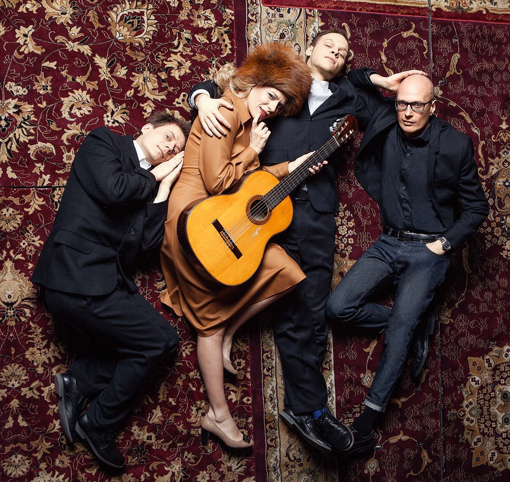Несколько лет назад мы делали фотосессию, посвященную спектаклю Константина Богомолова «Мушкетёры. Сага. Часть первая» в МХТ имени А.П.Чехова. Снимали в декорациях спектакля. Александра Ребенок играла в этой постановке Констанцию. В финале я предложил ей сделать фотографию на память. «Давай выберем необычный ракурс, — сказала она. — Например... лежа на ковре». Участниками нашей импровизации стали еще два актера, исполнители роли д’Артаньяна, — Данила Стеклов и Евгений Перевалов. И фото получилось действительно впечатляющим!
