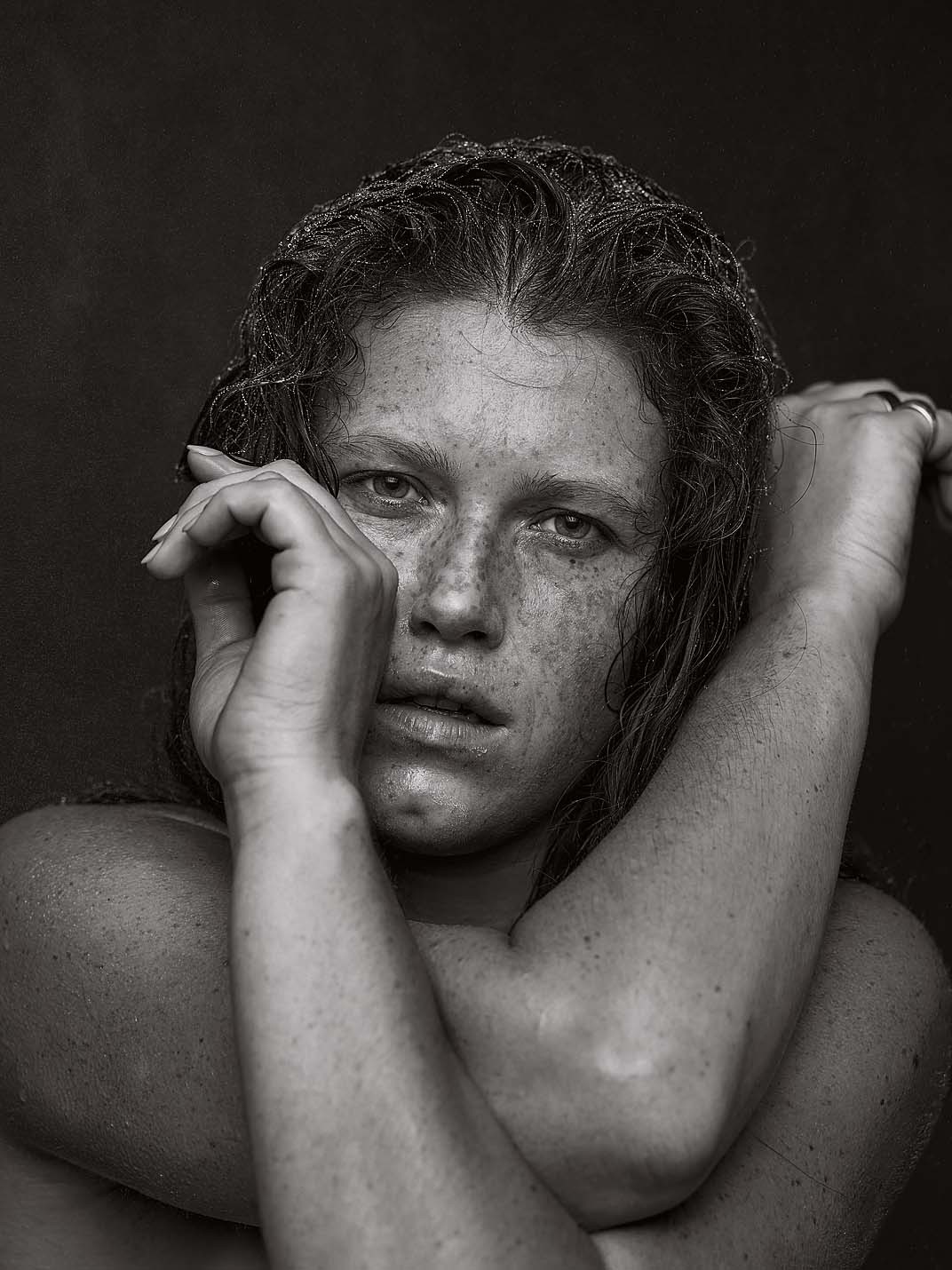 Я начинала эту историю в конце 2015 года и задумывала ее просто как некий творческий проект для себя. Мне захотелось снять что-то очень классическое, просто черно-белые портреты людей, которые мне нравятся. Изначально не планировалась выставка, не планировалась съемка известных людей для проекта. Просто мне захотелось увидеть человека сквозь призму воды: как он сопротивляется ей — и насколько он красив благодаря и вопреки ей. Мне было интересно наблюдать, как вода меняет человека. Снимать этот проект было абсолютным кайфом, потому что мне ничего не надо было делать. Просто в кадре оказывался человек, на его лицо попадала вода, а дальше происходила какая-то магия.