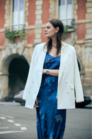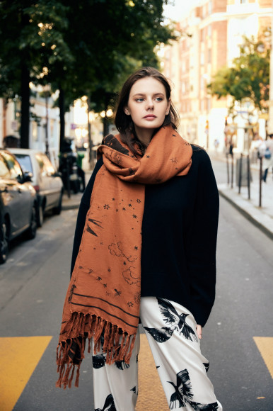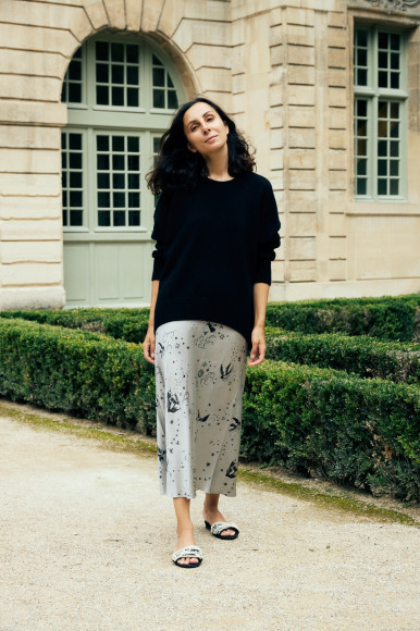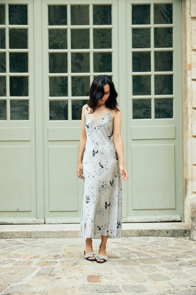 Все направления встраиваются в общую концепцию. В дебютном дропе речь идет о женской трансформации — превращении обычной-женщины в женщину-птицу. Она ощутила свою женскую энергию, почувствовала себя сильной, у нее выросли крылья. Это отражено в главном принте коллекции, созданном петербургской художницей Анной Ксенз, которая неоднократно рисовала обложки для книг моего мужа (писателя Александра Цыпкина. — «РБК Стиль»). Принт объединил образы птицы Феникс (символа трансформации) и птицы Сирин (предвестника важных событий). В славянской мифологии Сирин приходит с благими вестями, воспринять которые могут только те, у кого чистое сердце. Для них это птица-защитница, поэтому на Руси ее изображение вышивали на одежде в качестве оберега.