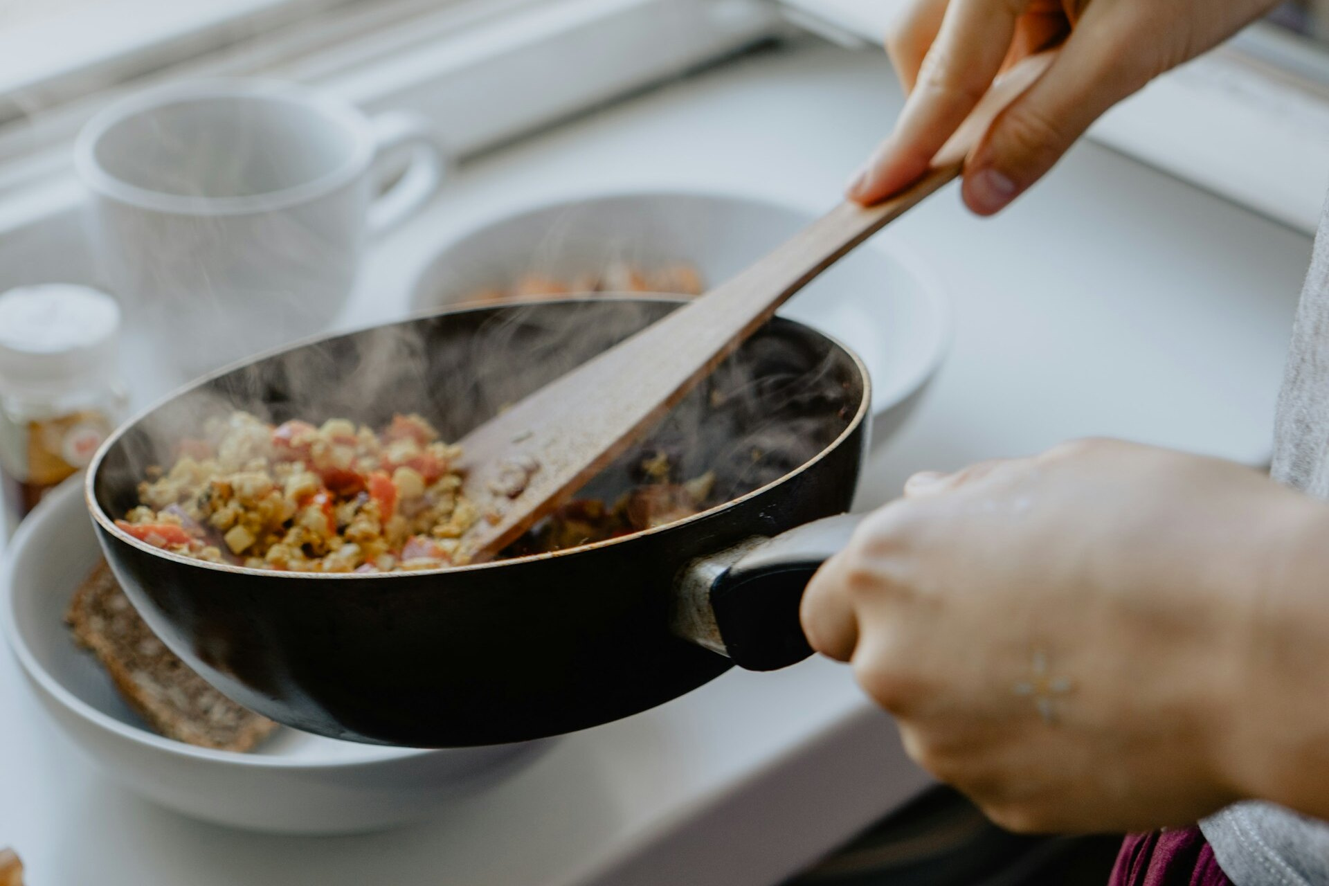 Первым делом избавьтесь от привычки разогревать в микроволновке или на сковороде остывший рис. В некоторых еще даже сырых зернах могут присутствовать споры bacillus cereus — почвенной бактерии, которая может вызывать пищевые токсикоинфекции у человека. После варки они могут остаться в незначительном (безопасным для нас) количестве, однако, если хранить крупу слишком долго при комнатной температуре, бактерии на ней начнут активно расти и размножаться.