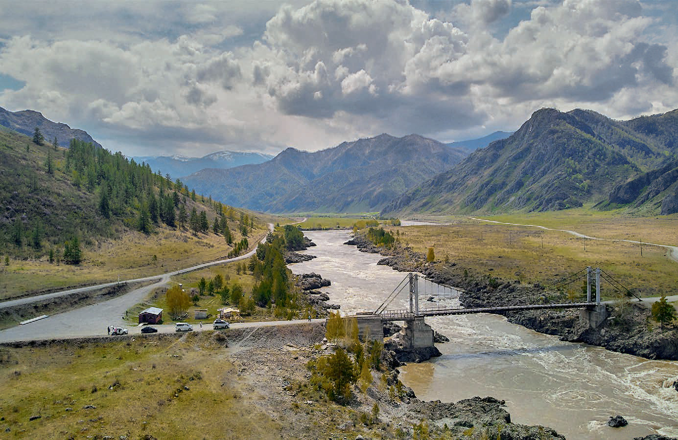 Еще одной точкой для фотосессии стал высокий, словно парящий над рекой, Ороктойский мост. Глубина Катуни в этом месте достигает 70 метров. Прогуливаясь по берегу, мы увидели на небольшой поляне сотни пирамидок из камней. Эти сооружения затем встречались нам повсеместно: в горах, на перевалах, на смотровых площадках. Есть разные версии, откуда и зачем пошла эта традиция, но сами алтайцы говорят, что этим не занимаются. Ведь установить себе «памятник» при жизни – плохая примета. Скорее всего, это придумали сами туристы для исполнения своих желаний.