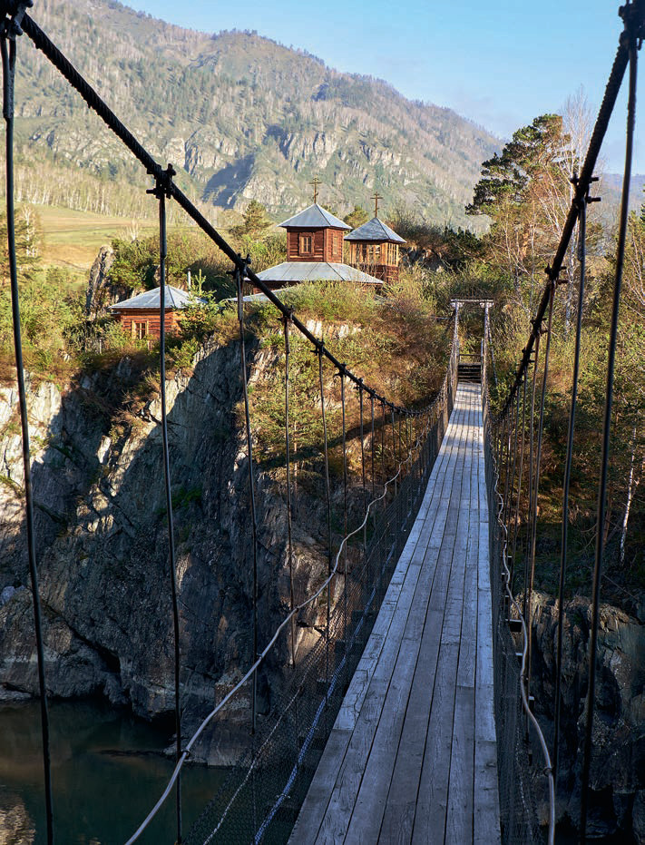 Третий подвесной мост в тот день был на знаменитый остров Патмос в селе Чемал. На нем расположен миниатюрный храм апостола Иоанна Богослова, куда стремятся попасть туристы и паломники. С берега можно увидеть огромный образ Богородицы с младенцем, высеченный прямо в скале.