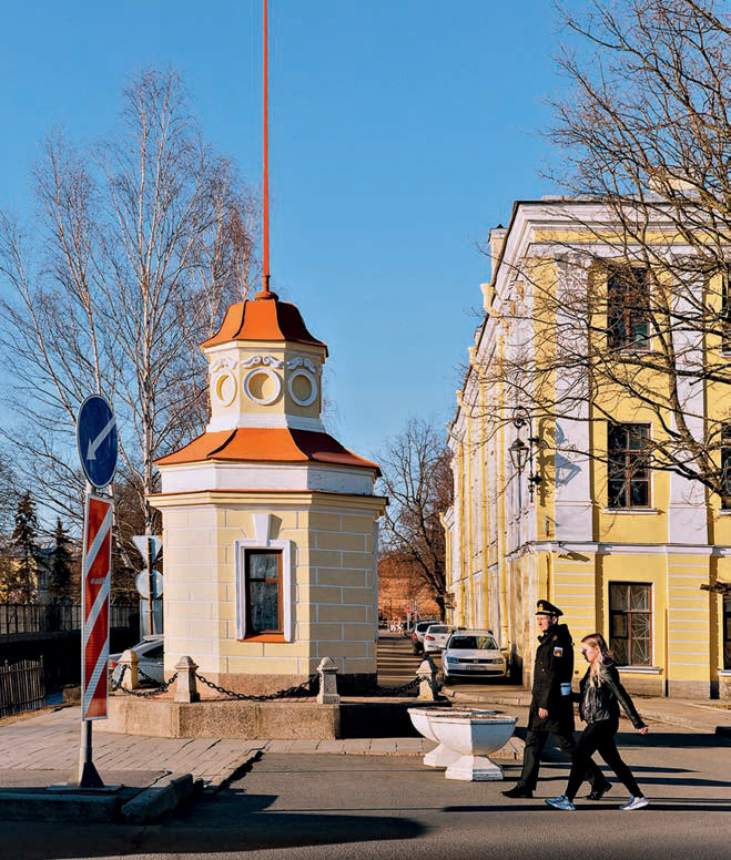Подъезжаем к красивому свежевыкрашенному зданию, похожему на церковь. Наверху ни купола, ни креста. Это старая водонапорная башня, храм городского водоснабжения. А сейчас здесь филиал Музея истории Кронштадта, экспозиция, посвященная подводной археологии.