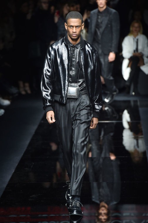 Фотография выше — с торжественного открытия, практически с красной дорожки. Зачем костюм, если в пару к брюкам вполне можно надеть простой черный бомбер? Этот прием Чак Норрис неоднократно использовал в восьмидесятых и девяностых, а сейчас мы то же самое раз за разом видим на подиумах. Dior, Louis Vuitton, Emporio Armani и Celine сочетают этот, казалось бы, спортивный и неформальный предмет гардероба со строгими брюками — гибридный образ получается подходящим и для светского выхода, и для делового дня, и для прогулки.