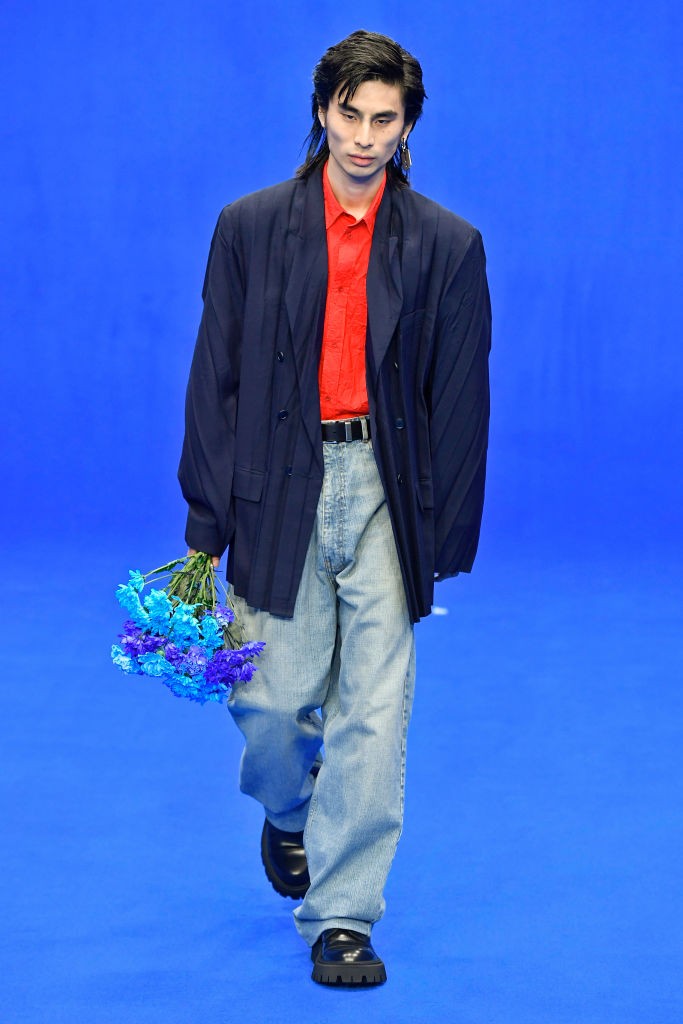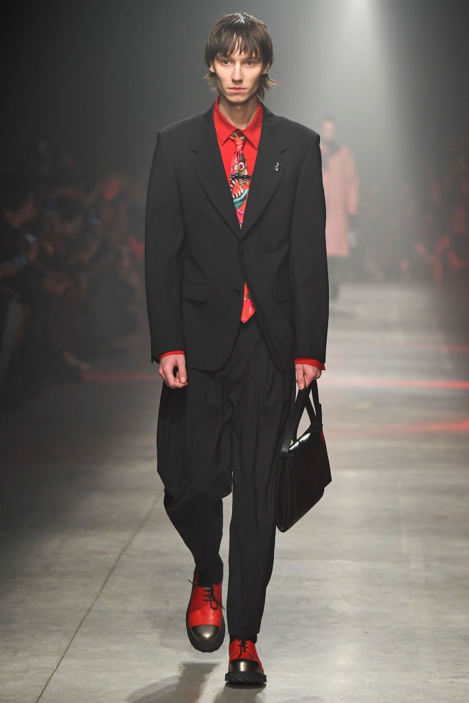 Почему бы не заменить белую рубашку красной? Во-первых, это эффектно. Во-вторых, все равно в рамках классики — с некоторой долей свободы, конечно. Чистый алый оттенок, широкие брюки, простой прямой пиджак, опционально — галстук: такой комплект выбрал Чак Норрис в 1988-м, похожие варианты мы видим, например, у Balenciaga и MSGM.
