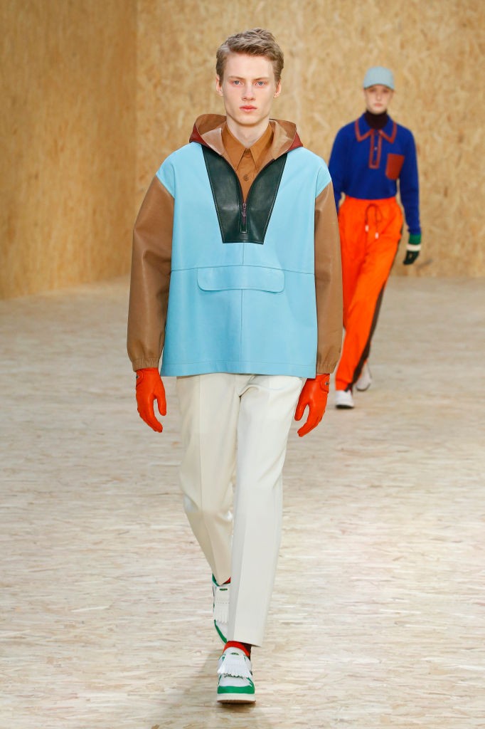 Кожаная куртка — неотъемлемый атрибут мужской моды восьмидесятых. Объемная, с аппликациями — такие в ту декаду носил каждый первый. У Чака Норриса была довольно обширная коллекция, от лаконичных однотонных до замшевых с бахромой или мотоциклетных с многочисленными нашивками. Эта темно-бежевая с цветными полосками, которую актер надел во время отдыха во Франции, отлично перекликается с тем, что показывают дизайнеры в коллекциях следующего сезона. Можно оттолкнуться от идеи полосок, как на показе Versace, а можно взять за основу колор-блокинг и необычную цветовую гамму — так сделали Lacoste. Если же хотите более аутентичную, ищите в винтажных магазинах — добротную кожу несложно найти в отличном состоянии, несмотря на возраст вещи.