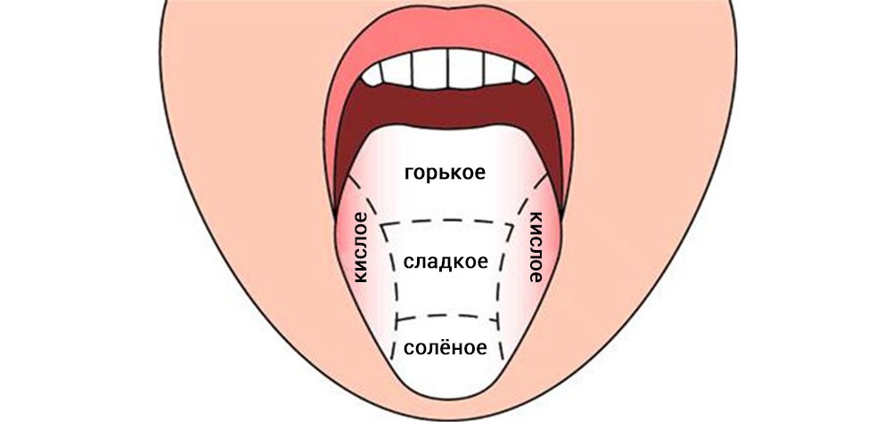 Первое, узкое и биологическое понимание термина «вкус» имеет отношение только к рецепторам, расположенным на вашем языке. Помните ту картинку с языком и зонами восприятия на нем четырех базовых вкусов: кислого, горького, соленого и сладкого? Это как раз про вкус в английском понимании узкого taste.