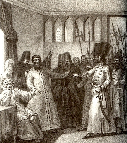 Первым «громким» случаем «насильного» пострига стало дело Соломонии Сабуровой. В 1505 году на традиционном смотре невест ее выбрали женой Василия III. За 20 лет супружеской жизни она не смогла родить наследника, за что попала в немилость великого князя. Оформить развод тогда было непросто, даже поговаривали: «Женитьба есть, а разженитьбы нет» или «Муж с женою — что мука с водою: сболтать сболтаешь, а разболтать, не разболтаешь». Боярская дума поддерживала решение Василия III о расторжении, а церковнослужители — нет. Тогда впервые в отечественной истории митрополита Варлаама лишили сана, а Соломонию Сабурову насильно постригли в монахини под именем Софии и сослали в Покровский монастырь Суздаля.