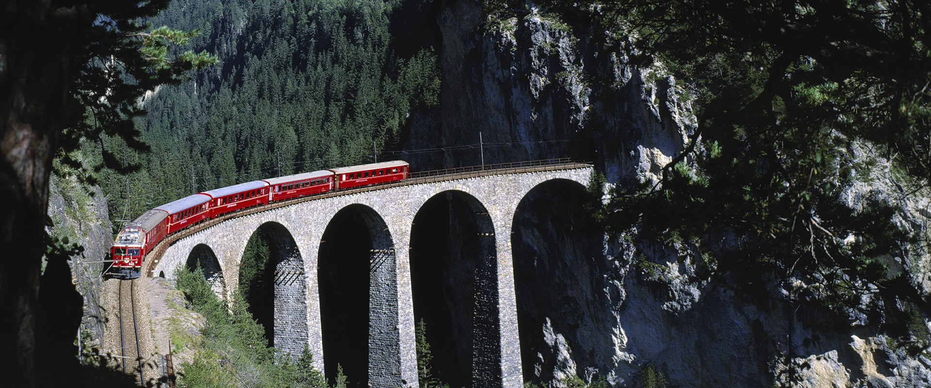 Один из самых эффектных способов пересечь Альпы и попасть из Швейцарии в Италию (и наоборот). Маршрут уникальный: 55 тоннелей, 196 мостов, а еще поезд поднимается на высоту 2 253 метра над уровнем моря и проезжает ледник. Ретийская дорога — часть пути из Тузиса в Тирано — имеет статус объекта Всемирного наследия ЮНЕСКО.