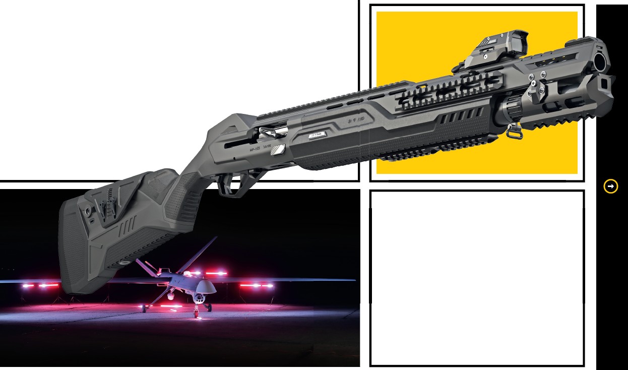 Внутри Ultima классический безотказный газоотводный автомат MP-155 второго калибра, который может поставляться с трубчатым магазином на четыре или шесть патронов плюс один в патроннике. Если подержать в руках Ultima и MP-155, то первая кажется ощутимее тяжелее. «Понятно почему – мы его обвешиваем разным оборудованием, – поясняет Власенко, – основной дополнительный вес приходится на "бивень" у среза ствола, который почти исключительно для дизайна. Но если нужно, им можно расколоть стекло. Он пришел как раз из компьютерных шутеров, где таким бивнем и раскалывают преграды».