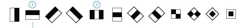 Почему это работает? Посмотрите на признак [1]. Почти на всех фотографиях область глаз всегда немного темнее области непосредственно ниже. Посмотрите на признак [2]: светлая область посередине соответствует переносице, расположенной между темными глазами. На первый взгляд черно-белые маски совсем не похожи на лица, но при всей своей примитивности они имеют высокую обобщающую силу.