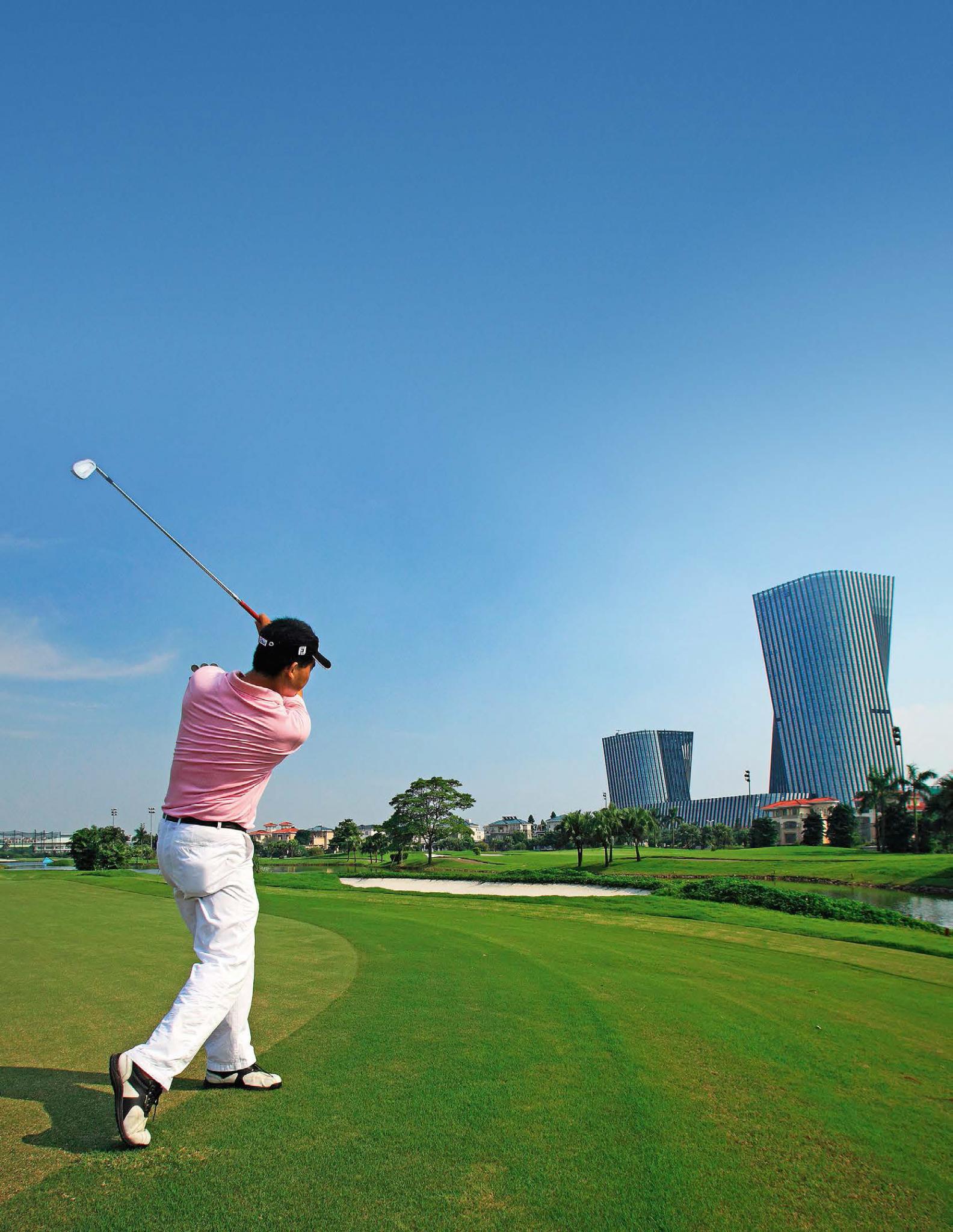Шуньдэ. Подъезжаем к стоящему почти посреди чистого поля деловому комплексу, центральную часть которого составляет небоскреб модной «завитой» формы. Говорят, здание воплотило в себе образ гольфиста, изготовившегося для удара. Рассказывают, что господин Хэ Сянцзянь очень любит гольф.