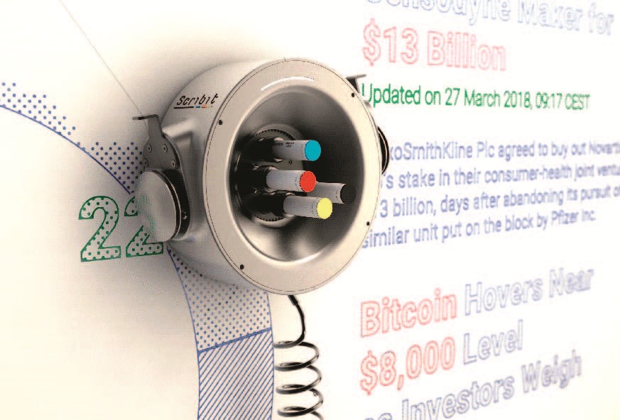 На краудфандинговой платформе Kickstarter разработчики Scribit собрали больше 800 тыс. долларов вместо запланированных 50. Рисующий на стенах робот стал международным хитом, и уже в декабре первые образцы отправятся заказчикам.