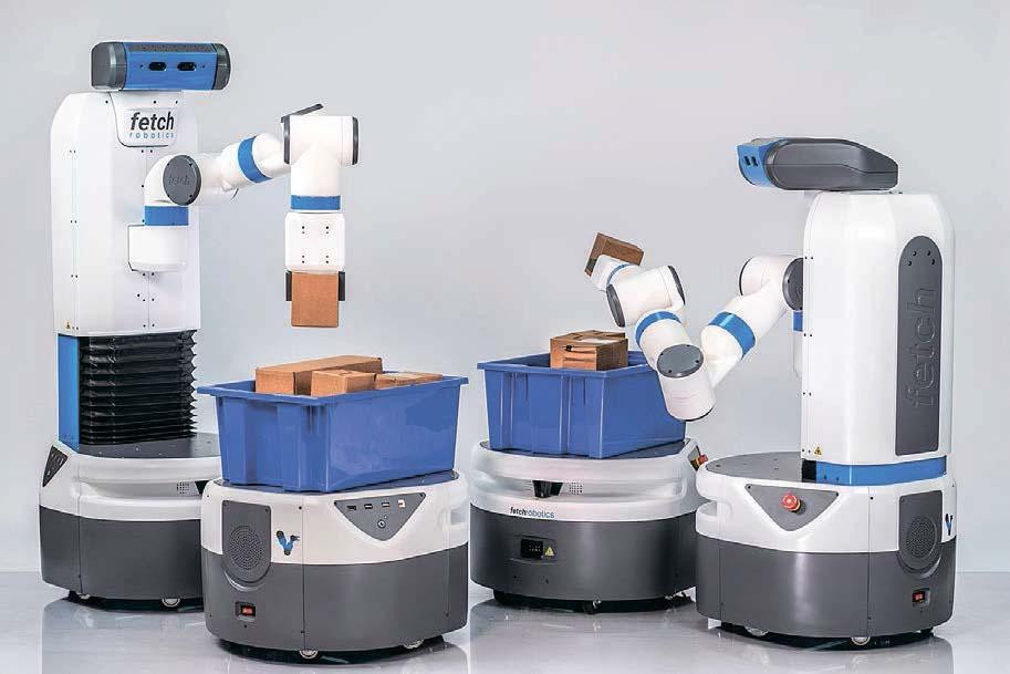 Менее чем за полтора года калифорнийская компания Fetch Robotics собрала почти 50 млн долларов инвестиций: стартап основан выходцами из знаменитой группы Willow Garage во главе с Мелани Вайс. Разработанная ими роботизированная система складской логистики включает подвижные платформы Freight разной грузоподъемности, развивающие до 5,5 км/ч. Они могут следовать за человеком, помогая ему, или принимать товары, спущенные с полок робогрузчиками Hmishelf, манипуляторы которых способны брать до 6 кг груза, действуя на высоте до 2 м. Машины ориентируются по заранее подготовленной карте, используя камеры и лазерные дальномеры, подзаряжаются самостоятельно и готовы работать без выходных и праздничных дней.