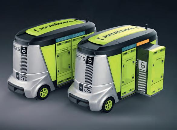 Беспилотная «MatrЁshka» не просто автобус, а настоящая электрическая платформа на шасси с возможностью установки различных надстроек – от малого пассажирского транспорта до грузовика или перевозчика коммунальной техники, причем замена модулей должна занимать не более 15 минут. Прототип, который можно было увидеть в Сколково, рассчитан на восемь человек и может принимать на борт до 1300 кг. Литий-железофосфатные батареи и 45-киловаттный электромотор обеспечивают дальность хода около 130 км и скорость до 30 км/ч – больше для беспилотного транспорта пока и не требуется.