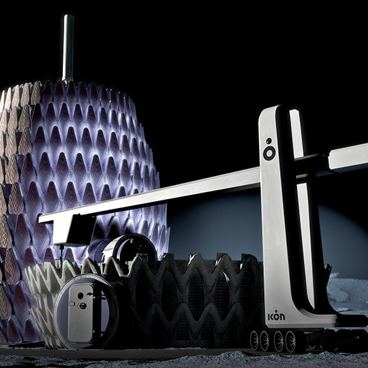 Проект Lunar Lantern («Лунный фонарь») Техасского стартапа ICON выставлялся на 17-й Международной архитектурной биеннале в Венеции. Он стал результатом разработок, которые спонсировались по программе сотрудничества с малым бизнесом NASA SBIR. Возводить «Лунный фонарь» предлагается исключительно из местных материалов с помощью роботизированных 3D-принтеров, не требующих постоянного участия людей. Для защиты от лунотрясений (которые вызываются здесь перепадами температур, метеоритами и влиянием гравитационного поля Земли) базу следует строить на упругом изолированном фундаменте и дополнительно стянуть прочными тросами. Для демпфирования ударов микрометеоритов внешняя поверхность строений Lunar Lantern покрыта многослойными структурами – щитами Уиппла. Сквозь них протянуты каналы световодов, доставляющие внутрь естественный свет. Отдельное внимание разработчики уделили проектированию посадочных площадок, чтобы минимизировать воздействие пыли, поднимаемой спускаемыми аппаратами. Специальные каналы направляют летучие частицы реголита и собирают их для использования при новом строительстве.