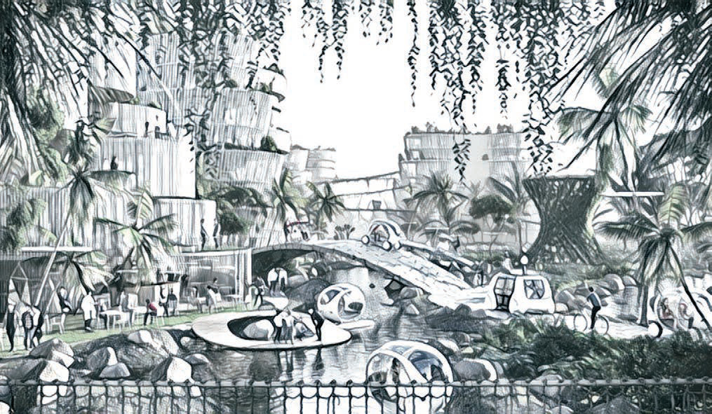 Помимо образовательных и административных центров, исследовательских институтов и цифровых парков, в BiodiverCity появятся общественные пляжи и набережная протяженностью 25 км. Рядом будет находиться оазис, представляющий собой миниатюрный архипелаг с плавучими домами на сваях и террасами, сообщает ArchDaily1.