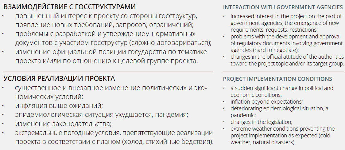 Each risk in the list above is an actual problem reported by Russian nonprofits from their experience. Therefore, we assume these can happen to you just as well. So when you are done designing your project, you can go through the list and try to answer the following questions: