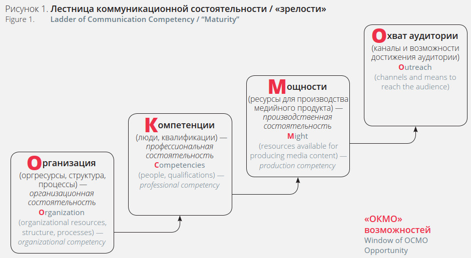 Базовая модель индекса получила название «ОКМО» возможностей». Аббревиатура ОКМО расшифровывается следующим образом: О — организация, К — компетенции, М — мощности, О — охват аудитории.