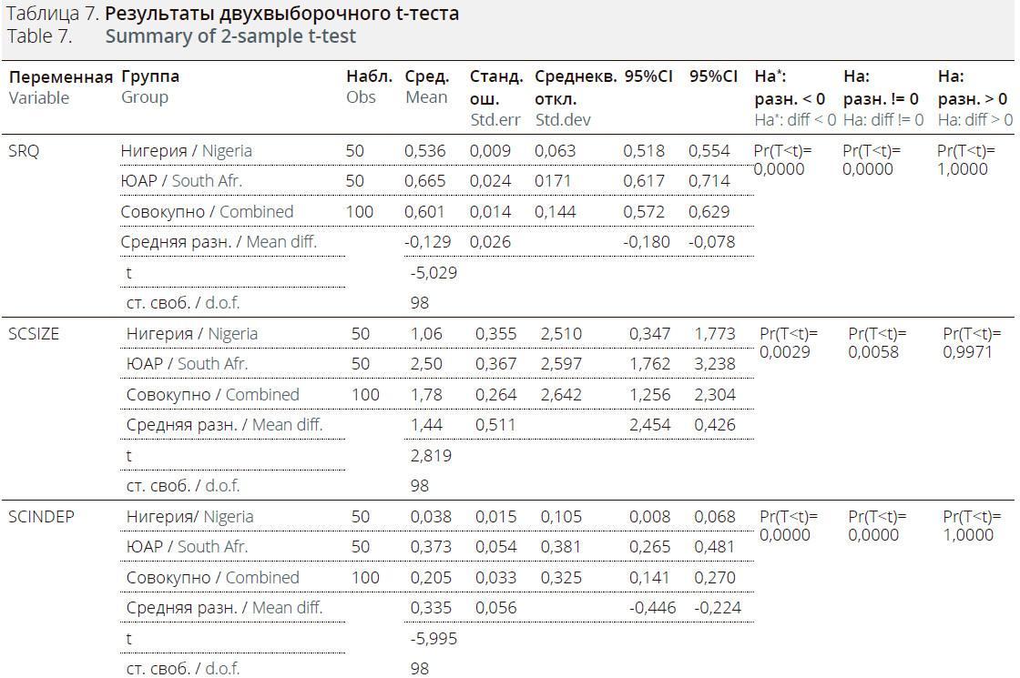 Кроме того, в исследовании был проведен анализ раскрытия информации об устойчивом развитии в банках Нигерии и ЮАР с помощью независимого t-теста/двухвыборочного t-теста. Результаты показали, что южноафриканские банки имеют более высокий уровень раскрытия информации, чем нигерийские, поэтому гипотеза H0(5) не может быть подтверждена.