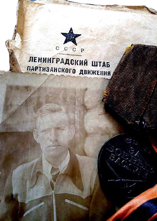 Состоял в рядах партизанского движения Ленинградского штаба.