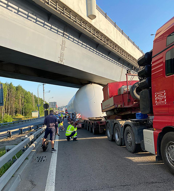Кроме того, хотелось бы отметить вклад в реализацию экспортного проекта сотрудников службы логистики и таможенного оформления. Так как по условиям договора габариты резервуаров системы хранения отвечали жестким требованиям заказчика – отгрузка этого оборудования до морского порта ж/д- и автотранспортом не представлялась возможной и превратилась, в хорошем смысле, в «приключение» для наших коллег из отдела логистики. В итоге решено было ограничить автомобильное «плечо» до ближайшего речного порта Беседы, а далее транспортировать резервуары по внутренним водным путям до порта Санкт-Петербурга. Кстати, на индийских коллег произвели большое впечатление кадры перевозки негабаритных резервуаров по МКАД.