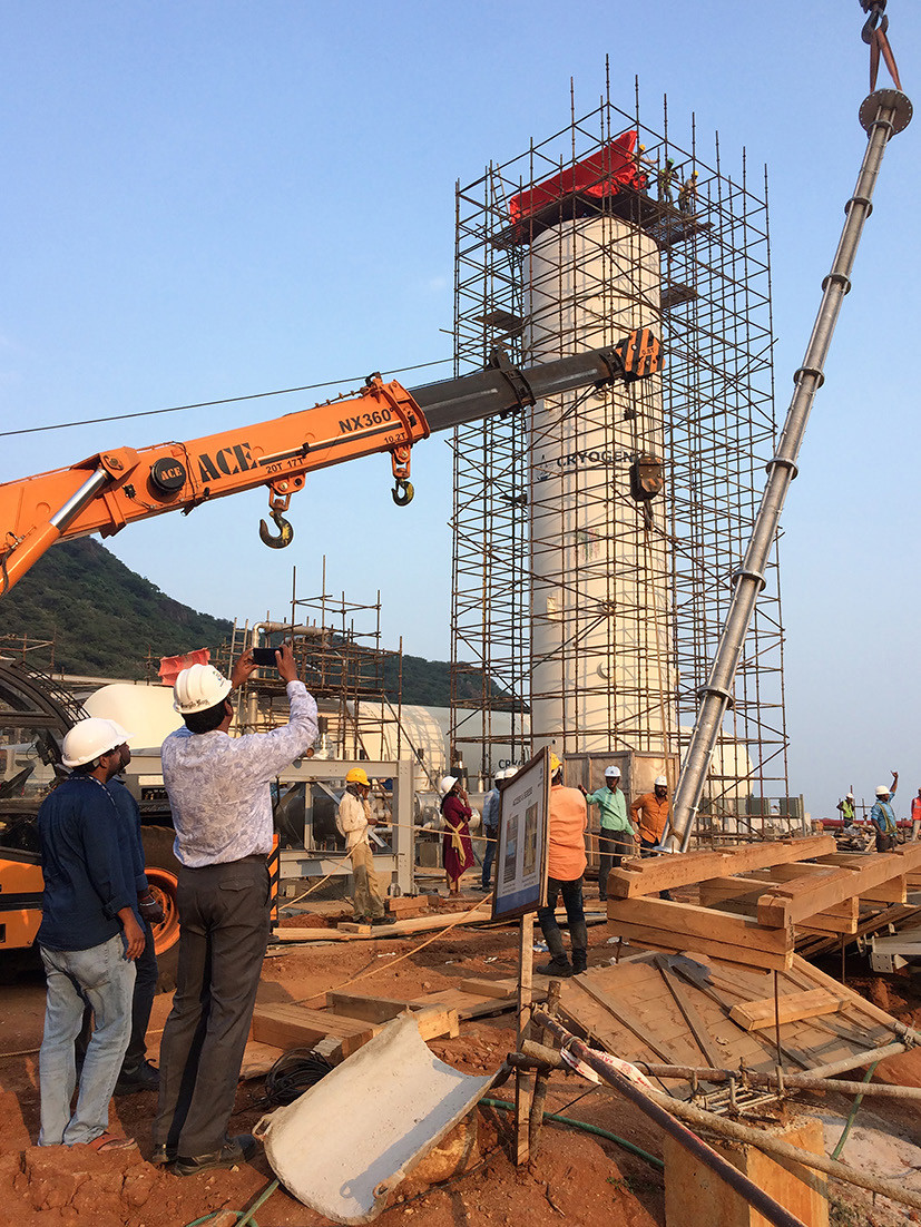 Все ракетоносители, которые были в Индии – они на некриогенных компонентах, поэтому новая ступень – создание современных двигателей для запуска космических аппаратов на основе жидкого кислорода и керосина. Это и был наш первый контракт для ISRO. В центре Махендрагири создавались сразу 2 новых стендовых комплекса – один SIET полукриогенный стендовый комплекс (для испытания двигателей носителя и ступеней, обеспечения их некриогенным топливом – керосином и окислителем – жидким кислородом) – в этом проекте мы выполняли криогенную часть, касающуюся систем заправки кислородом, охлаждения гелием и обеспечения азотом, второй – ICET криогенный – для испытания криогенных двигателей. Второй контракт касается второго комплекса – компоненты жидкий кислород и жидкий водород, и системы обеспечения жидким азотом, хранение их в жидкой фазе, газификация и распределение потребителям, система «жидкий кислород» для обеспечения двигателя окислителем, система «жидкий водород» для обеспечения двигателя горючим. Эти 2 контракта мы получили на конкурсной основе, Криогенмаш участвовал в международном тендере среди нескольких компаний. Комплекс создается «под ключ» со строительными работами, поставкой оборудования, проектированием всех систем.