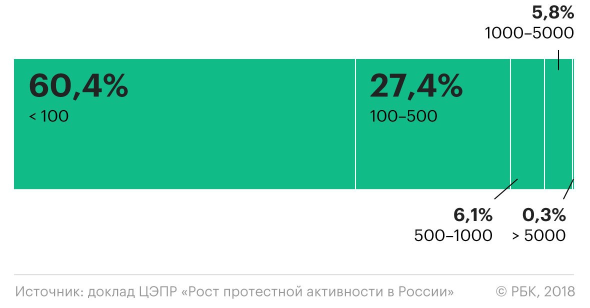 Глава ЦЭПРа Николай Миронов объяснил рост числа протестов тем, что до 2018 года они были разрозненными. «Они дробились на множество не связанных друг с другом проблем, и лишь изредка возникала какая-то относительно крупная тема, объединявшая разные регионы, как, например, права дальнобойщиков или дольщиков», — сказал он РБК. В 2018 году социальный протест, спровоцированный пенсионной реформой, ростом цен и налогов, охватил всю страну: и крупные города, и периферию. В нем выразилось копившееся в последние три года недовольство постоянным ухудшением жизни на фоне растущего социального расслоения и явное отсутствие перспективы изменения ситуации к лучшему, сказал эксперт.