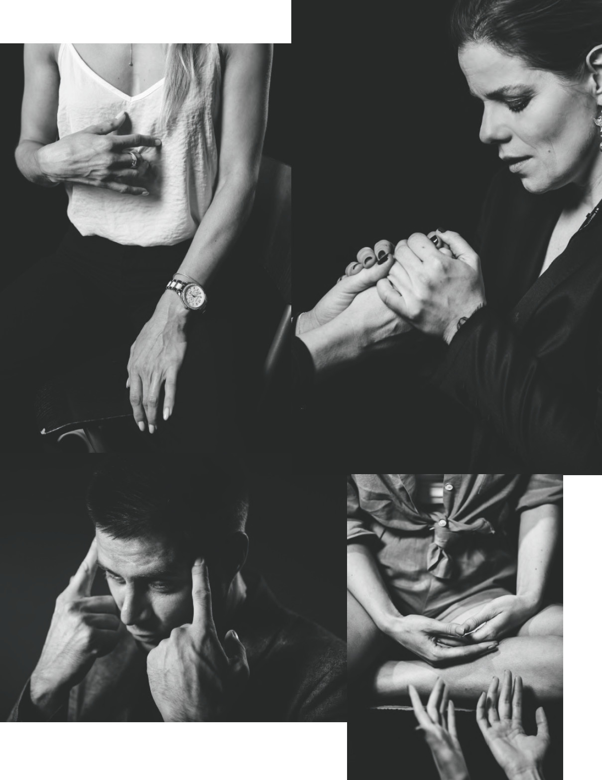 «Андрей был моим клиентом и затеял этот проект, — рассказывает психолог Екатерина Приморская.— Давай, говорит, я буду фотографировать других клиентов после сессии. Там столько эмоций! Я возразила: после сессии они уставшие, вымотанные, у них свои процессы, иногда они потерявшиеся, им надо переварить то, что происходило с ними». Она предложила поэкспериментировать: снимать во время сессии. «Стали приходить клиенты, которые ждали небанальную сессию, им хотелось увидеть себя со стороны, такими, какими их видят другие, — продолжает Екатерина Приморская. — В основном те, кто раньше не пробовал психотерапию, боялся ее, не знал, нужна ли она вообще. Это была словно проба ножкой воды: прикоснуться к психологии вот так, нежно, бережно. Удивительно, но большая часть из них осталась в терапии: кто-то стал работать со мной, кто-то нашел другого терапевта. Но главное, они пошли дальше изучать себя».