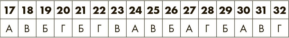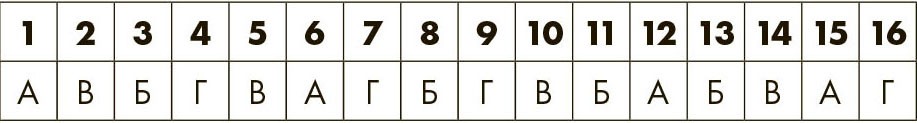 Для каждого выбранного утверждения обведите соответствующую букву. Затем подсчитайте общее количество A, Б, В и Г. Если вы получили одинаковый результат по двум или нескольким буквам, перечитайте тест еще раз и уточните свой выбор. Затем прочтите профиль – он обозначен преобладающей в вашем результате буквой.