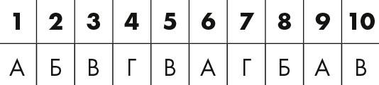 Для каждого отмеченного утверждения найдите буквенное соответствие в таблице ниже. Подсчитайте количество A, Б, В, Г и прочтите свой профиль на следующих страницах.