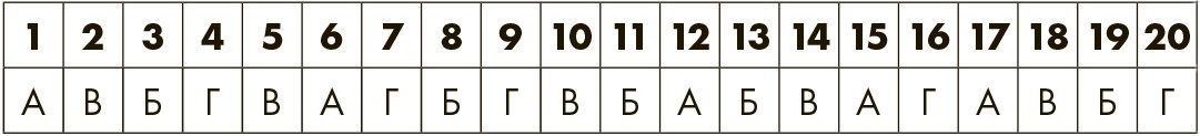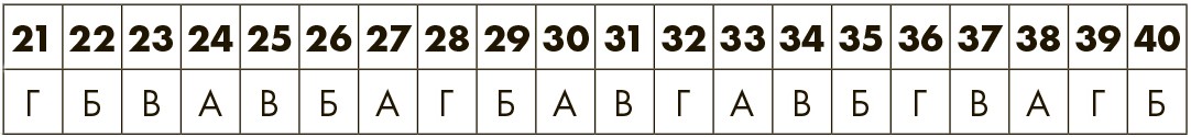 Обведите кружком букву, соответствующую каждой поставленной вами галочке. Затем подсчитайте общее количество А, Б, В и Г и посмотрите свой профиль ниже.