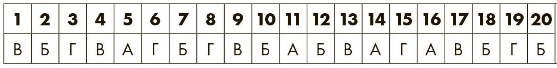 Для каждого отмеченного выражения обведите свой ответ в таблице. Затем посчитайте общее число ответов для A, Б, В, Г и узнайте свой профиль на следующей странице.