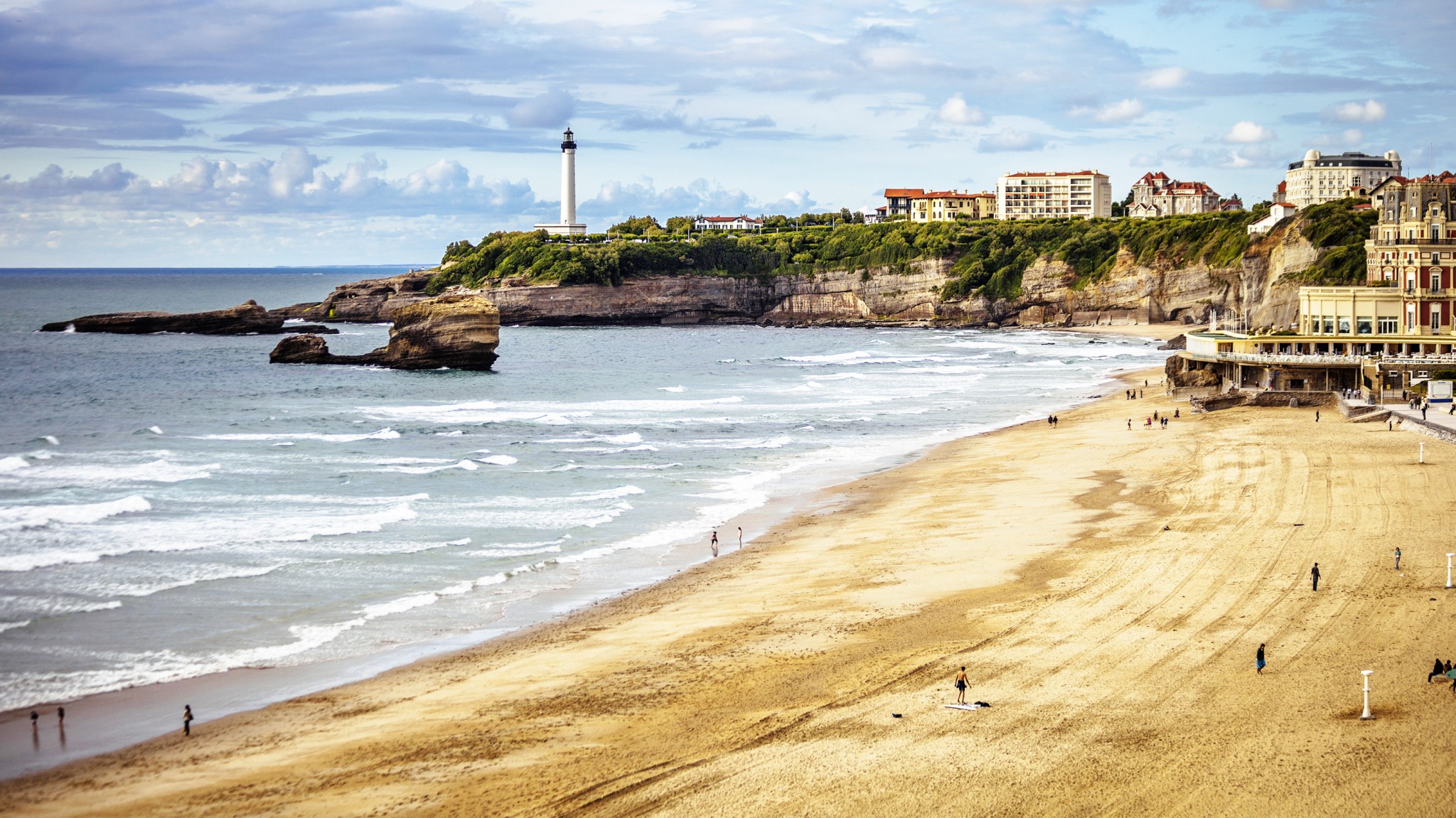 Биарриц стоит «амфитеатром» к океану, что делает климат очень мягким – с теплыми зимами и приятным летом. Даже если температура воздуха здесь и поднимается выше +30 ºС, легкий бриз тут же окутывает весь город прохладой. Неудивительно, что супруга Наполеона III когда-то