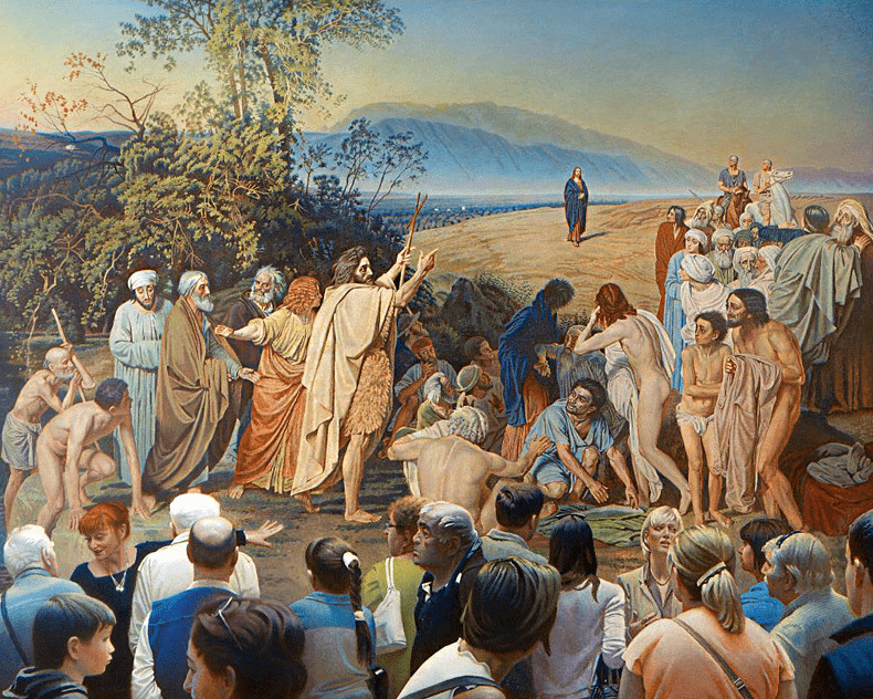 Другое популярное произведение Булатова посвящено самой большой картине в собрании Третьяковки — «Явление Христа народу» Александра Иванова. В работе «Картина и зрители» художник выстроил композицию так, что изображенные на нем посетители галереи и экскурсоводы сливаются с толпой на полотне Иванова, становятся его продолжением.