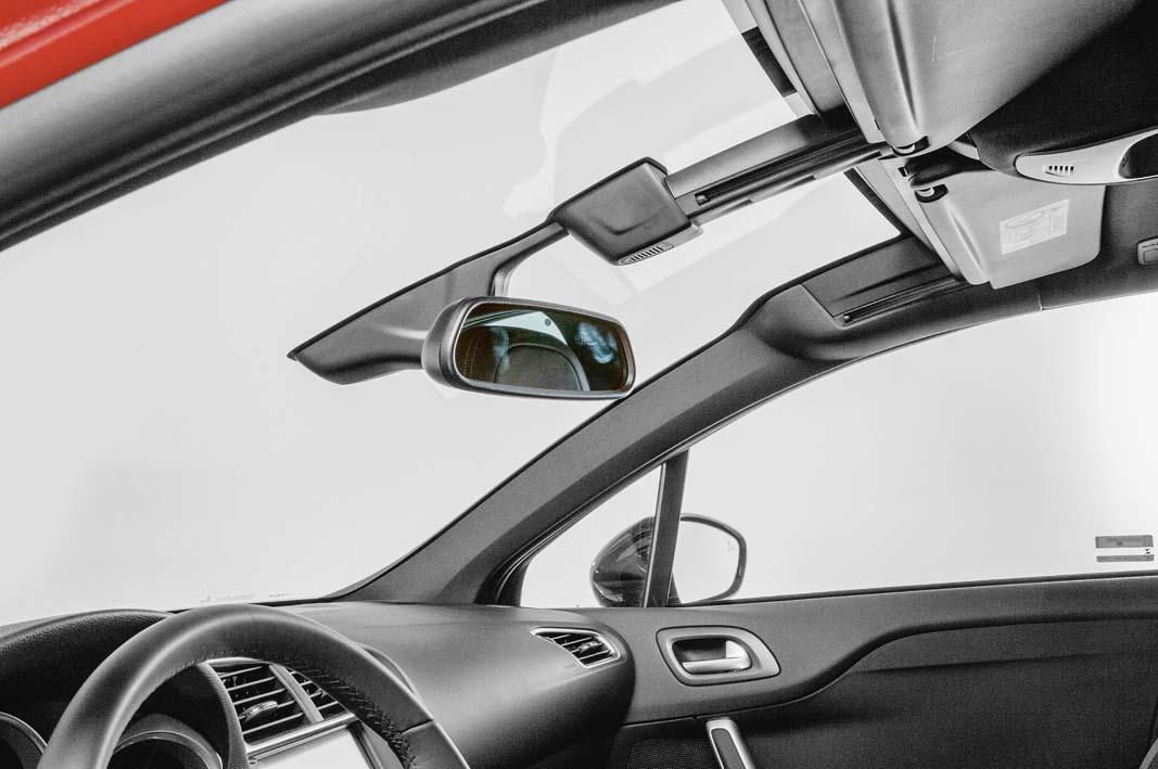 Среди органов управления, которые сделаны хорошо, отметим стеклоподъемники, переключатель света, кнопки на руле, регулировки климат-контроля. Управление же мультимедией не столь благородно. Потолок мягкий и красивый. А вот USB-слот внизу консоли расположен неудобно: в нише маловато места для подключения кабеля. У автомобиля по-прежнему штатное панорамное лобовое стекло с мобильными противосолнечными козырьками и сдвинутой назад подсветкой салона: виды из «француза» открываются на загляденье.