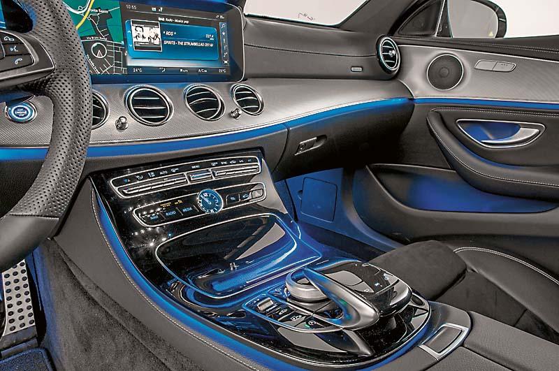 Центральная часть обивки сиденья выполнена из микрофибры: смотрится спортивно, сидишь правильно, глубоко, боковая поддержка вполне достаточная. Если углубиться в многостраничный список опций, можно обнаружить множество вариантов обивки, электрических регулировок, систем обогрева и вентиляции. Отделан салон очень тщательно, как того и требуют традиции Mercedes. Нам, например, понравилось, как искусственная кожа сочетается с «техническими» материалами, в частности, с алюминием, использованным в отделке некоторых деталей. Цветовая гамма тоже подобрана удачно, она создает шикарную, мягкую атмосферу. Ночью цвета подчеркивает светодиодная подсветка, элегантная и мягкая (оттенков на выбор множество). Места вполне достаточно, по крайней мере, спереди. На заднее