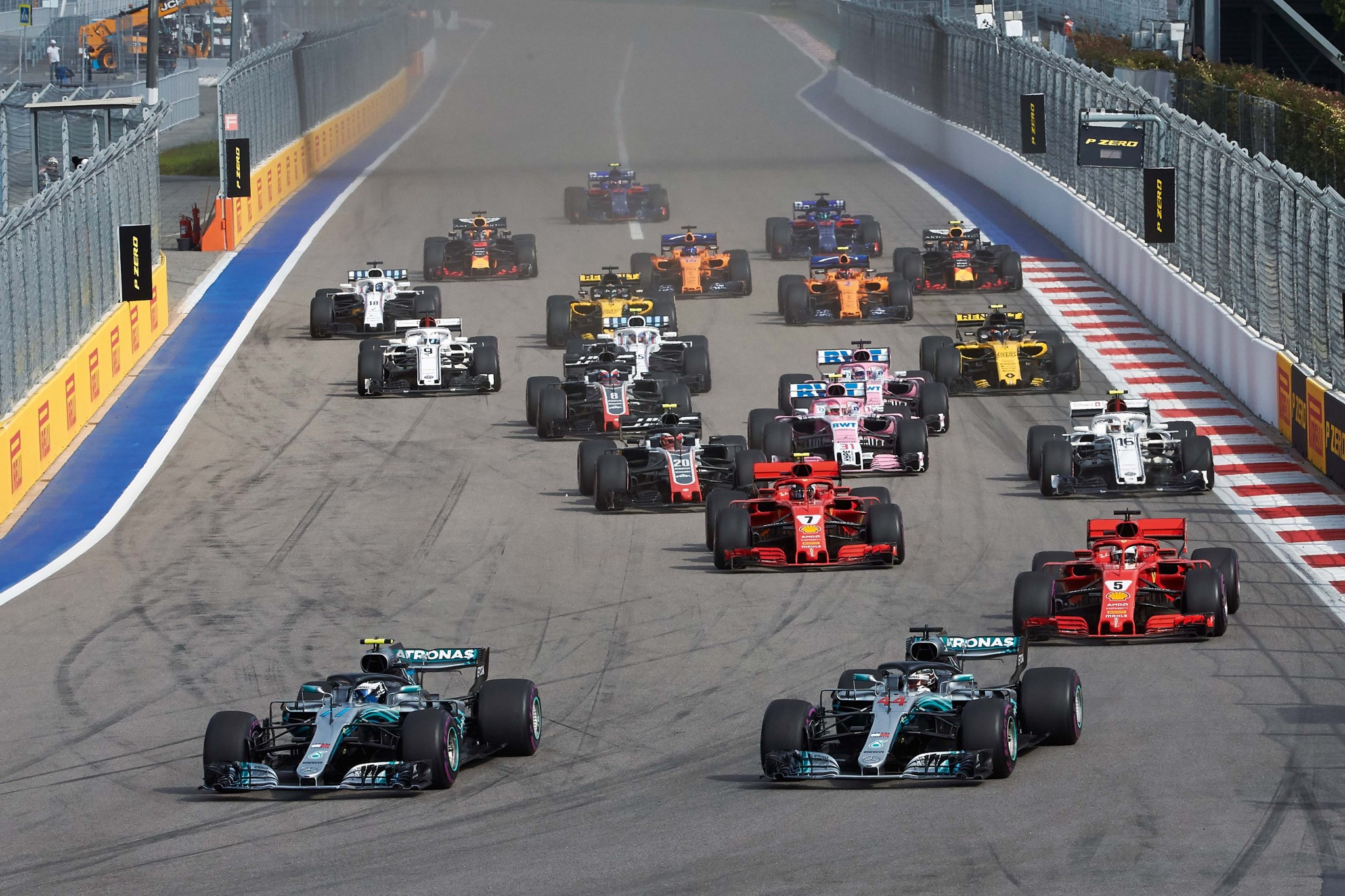 Главным событием в борьбе за победу на Гран-при России стал размен позиций партнеров по команде Mercedes-AMG. Четырехкратный чемпион мира и лидер этого сезона Льюис Хэмилтон проиграл квалификацию своему напарнику Валттери Боттасу: финн начал гонку первым, британец — вторым. На старте пилоты сохранили позиции. Казалось, Боттас преодолел затянувшийся спад в результатах и наконец сможет выиграть первую гонку в сезоне. Гран-при России казался его лучшим шансом: впервые в сезоне финн действительно выглядел быстрее Хэмилтона.