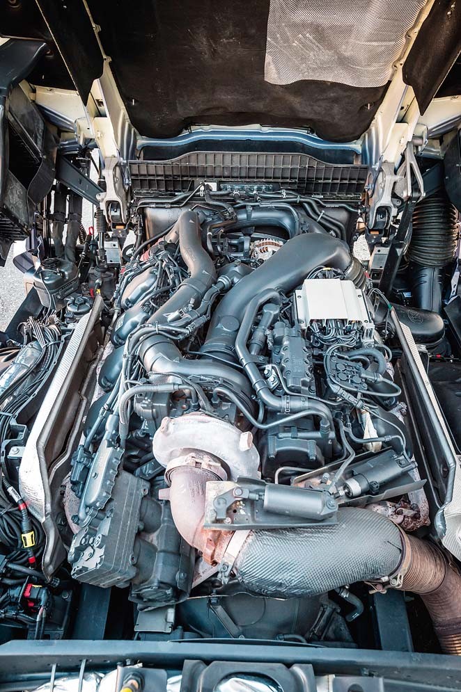 Но сперва напомним, что же такое единственный оставшийся в моторной гамме Scania (вместе с перешедшими на газ 5- и 6-цилиндровыми двигателями) агрегат V8. Он сохранил системы рециркуляции отработавших газов EGR и наддува VGT, а остальные модели массово перевели на политику «только с технологией ней трализации выхлопных газов SCR и турбиной постоянной геометрии». Эта особенность S730 не имеет аналогии в Iveco, где пошли несколько иным путем: самые мощные Stralis XP перестали оснащать одной SCR, внедрив в минимальной степени и EGR. Это показывает, насколько тонок баланс современных двигателей, когда нужно выжать из них максимум, оставшись в рамках норм по выбросам.