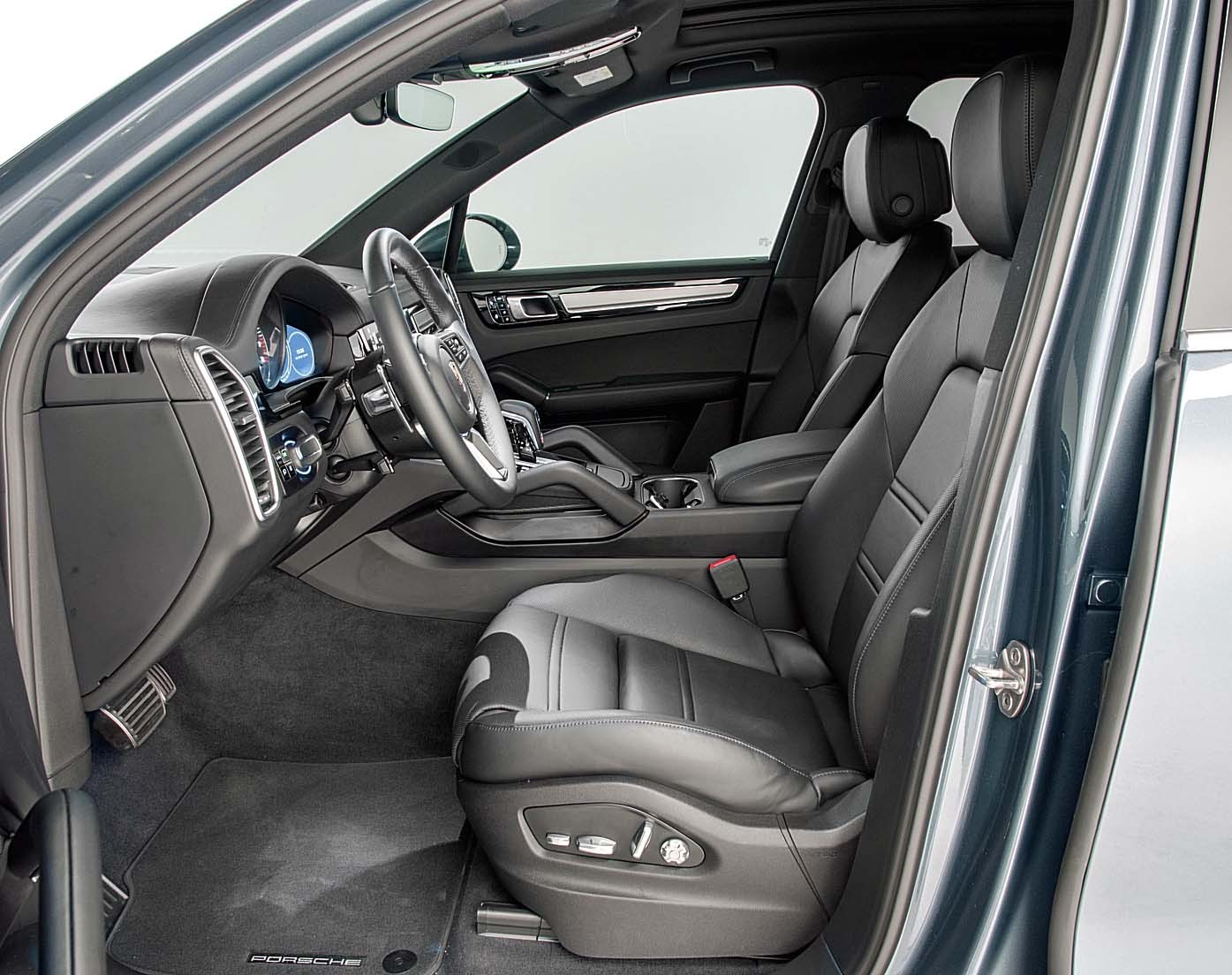 Посадка в Cayenne высокая, но спортивная; ноги полувытянуты, маленький руль стоит вертикально, для левой ноги предусмотрена большая площадка. В общем, есть все, чтобы наслаждаться вождением, включая удобное кресло с развитой поддержкой. Благодаря многочисленным электрорегулировкам оптимальное положение без труда подберет водитель любой, подчеркиваем — любой комплекции.
