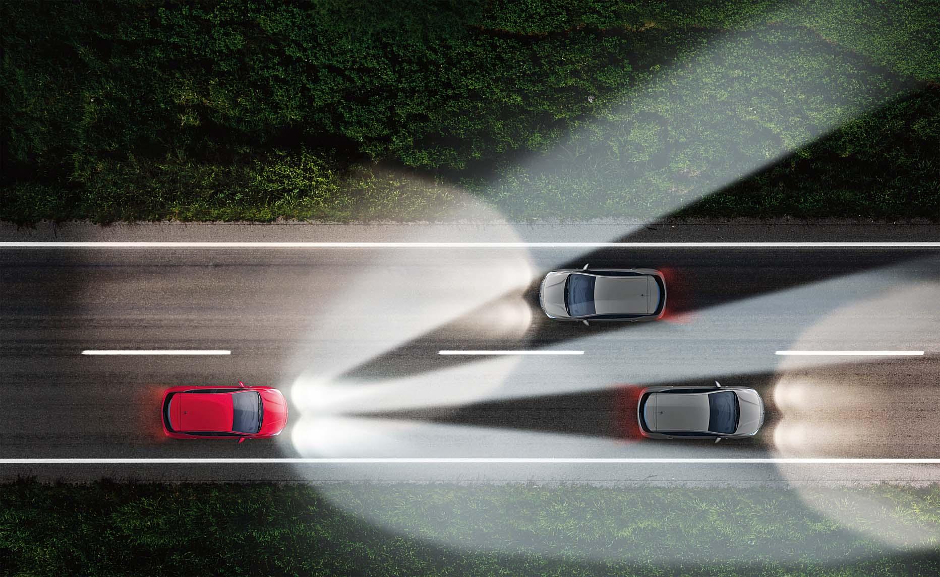 Система управляет включением дальнего света с помощью камеры под лобовым стеклом и специального блока управления. Когда машина находится вне жилых освещенных зон и камера не видит встречные или попутные автомобили, дальний свет зажигается автоматически. Но как только система распознает наличие автомобилей или освещение в жилых зонах, дальний свет автоматически переключается обратно на ближний.