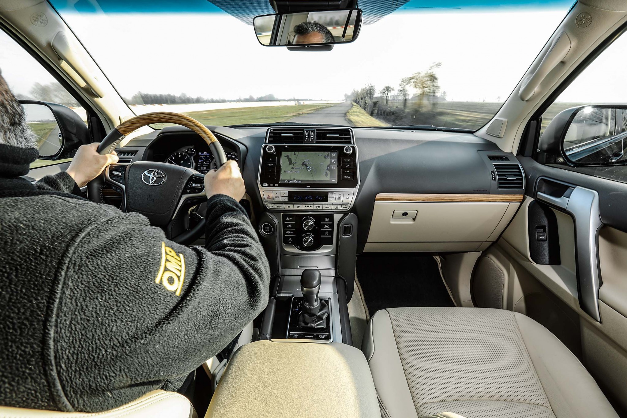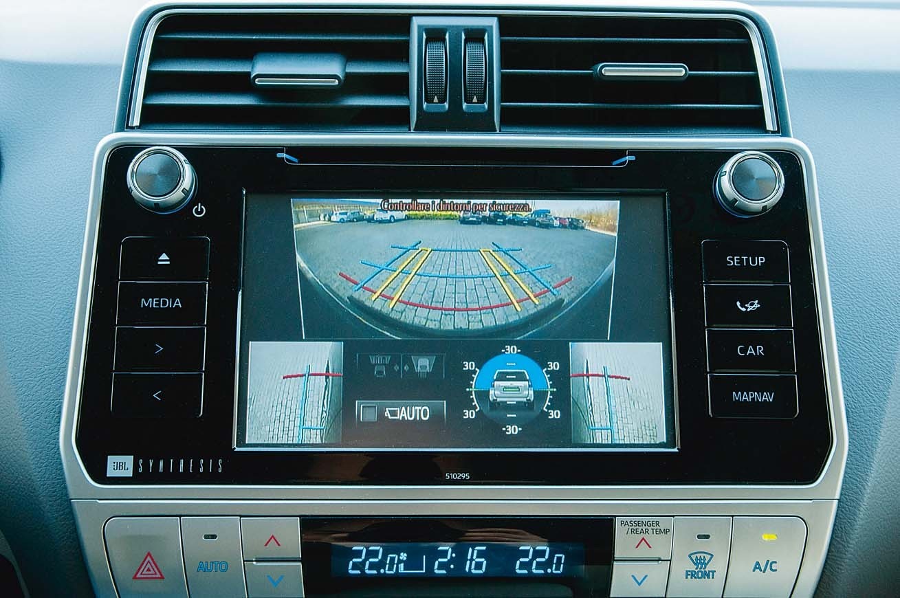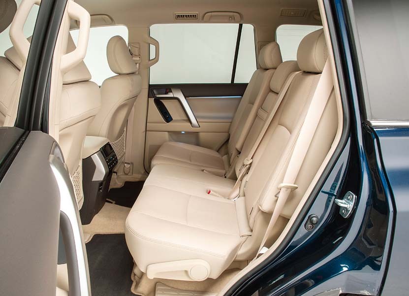 Сел за руль, осмотрелся — и вот уже нахлынули давно знакомые чувства, неподвластные новым SUV премиум-класса. Посадка в японском внедорожнике высокая, ноги водителя согнуты в коленях. Остекление щедрое, стойки не особо толстые, на монументальной центральной консоли — 8-дюймовый дисплей мультимедийной системы Toyota Touch 2. И, конечно, в салоне очень просторно. Сиденья стоят в три ряда, можно ехать всемером. Правда, на заднем ряду не очень удобно, да и доступ туда затруднен.